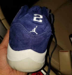 Pinoe77 provides a first look at the "RE2PECT" Air Jordan 11 Retro Low, a low-cut version of the pop-up shop exclusive released in New York last May. The shoe sports a Yankees-inspired navy suede upper, white midsole and milky translucent sole. Jeter-specific details include his jersey number '2' embroidered on the heel and printed on an insole, along with the word 'RE2PECT.'