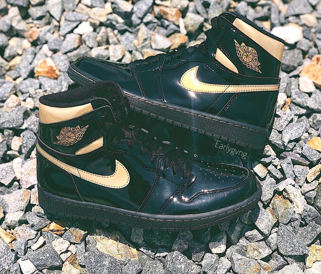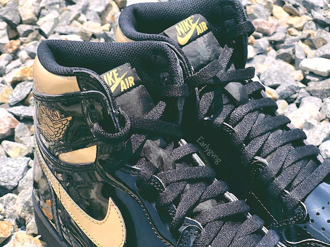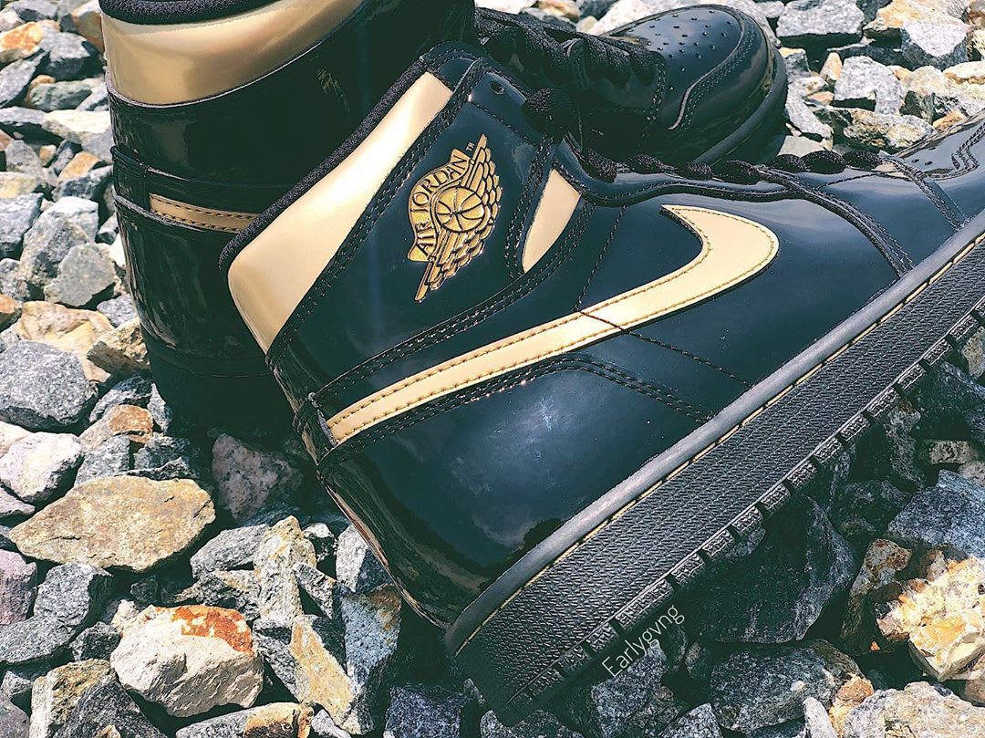 UPDATE (06/24): Another detailed look at this year's black and gold patent Air Jordan 1 High via hanzuying.