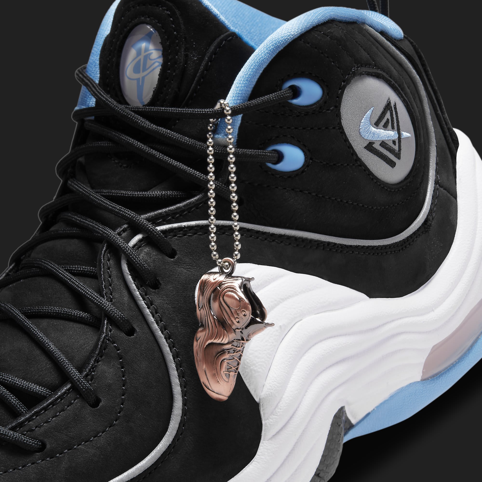 Like the aforementioned Penny 1s, the Social Status x Nike Air Penny 2 will release in two contrasting colorways. The first uses a mix of sail and university blue on the upper with a white midsole, while the second is reminiscent of the sneaker’s original Orlando Magic colorway but replaces the royal blue with a lighter shade and adds subtle rose coloring. Unlike the Social Status x Air Max Penny 1’s removable Swoosh logos, the store’s take on the Penny 2 doesn’t appear to feature any major design changes, but it does come with a copper-colored keychain medallion in the shape of the sneaker and alternate lace options. Meanwhile, the reflective ankle pod features the Social Status logo intertwined with the Swoosh.