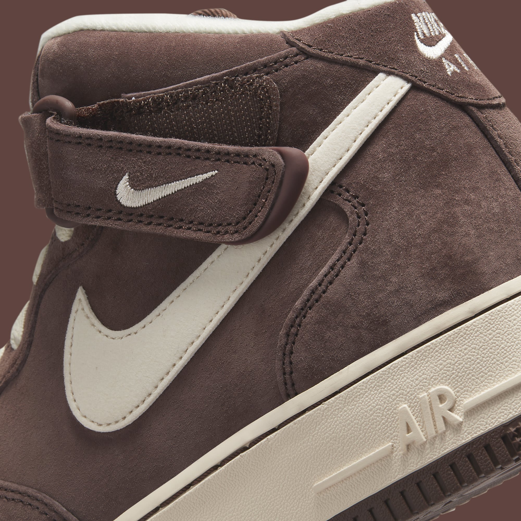 Pictured here is the forthcoming re-issue of the “Chocolate” Air Force 1 Mid makeup. The style made its debut back in 1998 and the look remains faithful to the original as it features a premium brown suede upper with light brown hits on the Swoosh, shoelaces, and Nike branding on the tongue and heel tab. Wrapping up the look is a light brown midsole and a dark brown outsole.