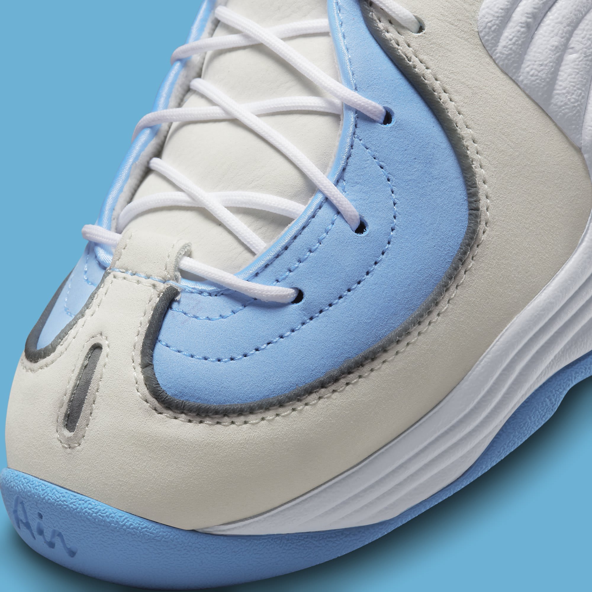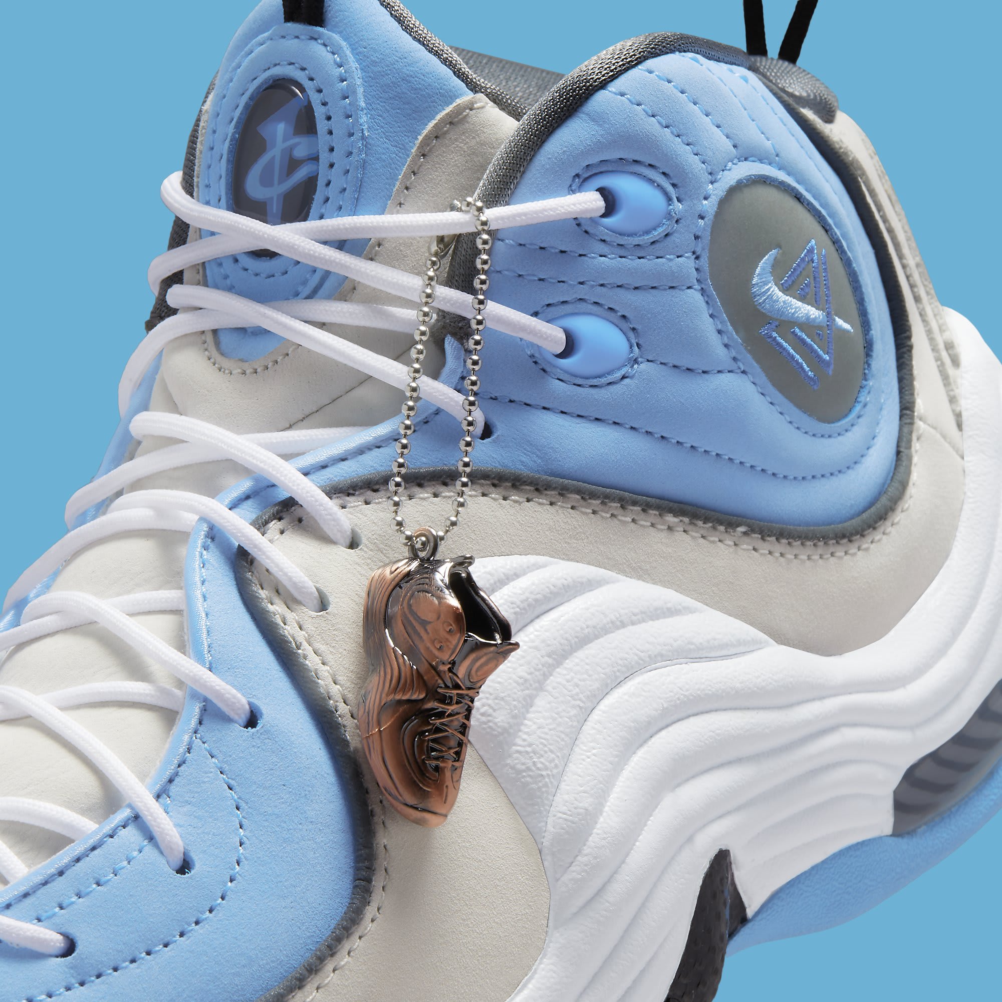 Like the aforementioned Penny 1s, the Social Status x Nike Air Penny 2 will release in two contrasting colorways. The first uses a mix of sail and university blue on the upper with a white midsole, while the second is reminiscent of the sneaker’s original Orlando Magic colorway but replaces the royal blue with a lighter shade and adds subtle rose coloring. Unlike the Social Status x Air Max Penny 1’s removable Swoosh logos, the store’s take on the Penny 2 doesn’t appear to feature any major design changes, but it does come with a copper-colored keychain medallion in the shape of the sneaker and alternate lace options. Meanwhile, the reflective ankle pod features the Social Status logo intertwined with the Swoosh.