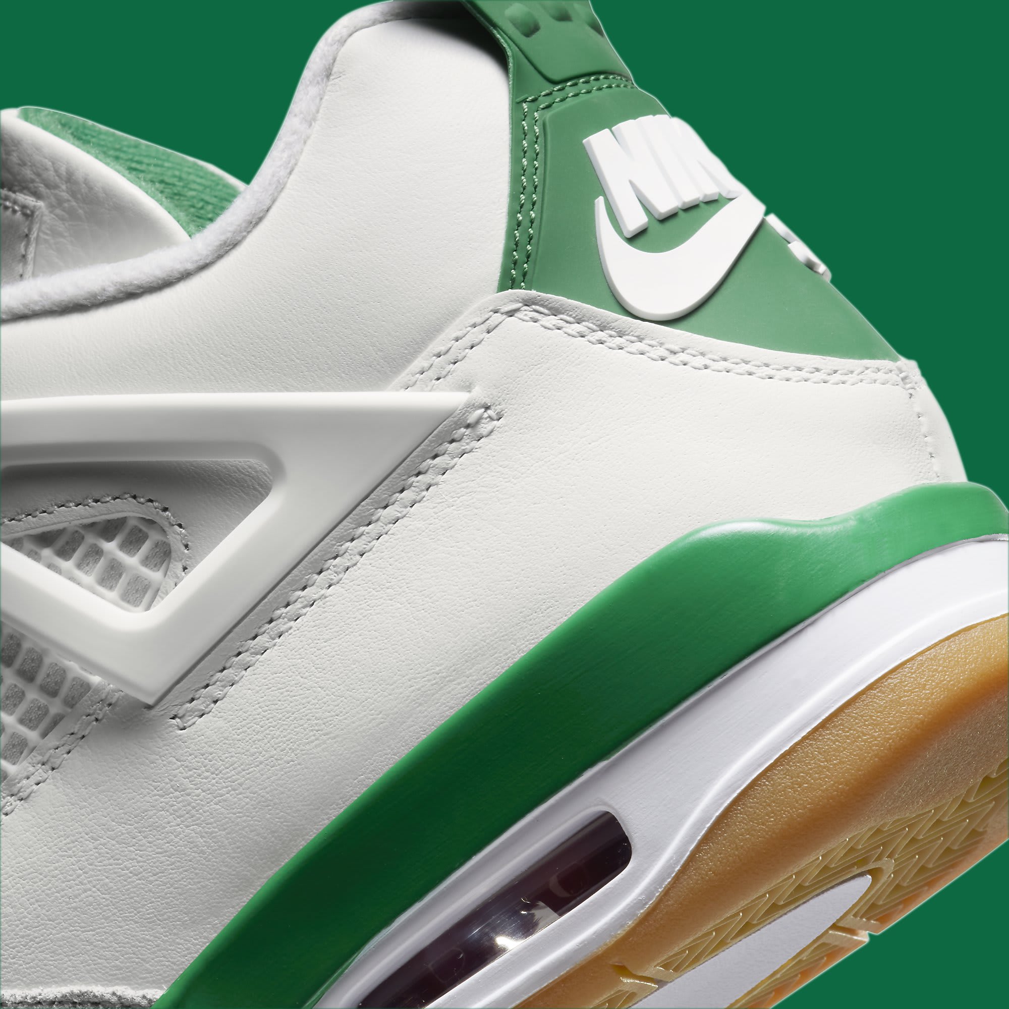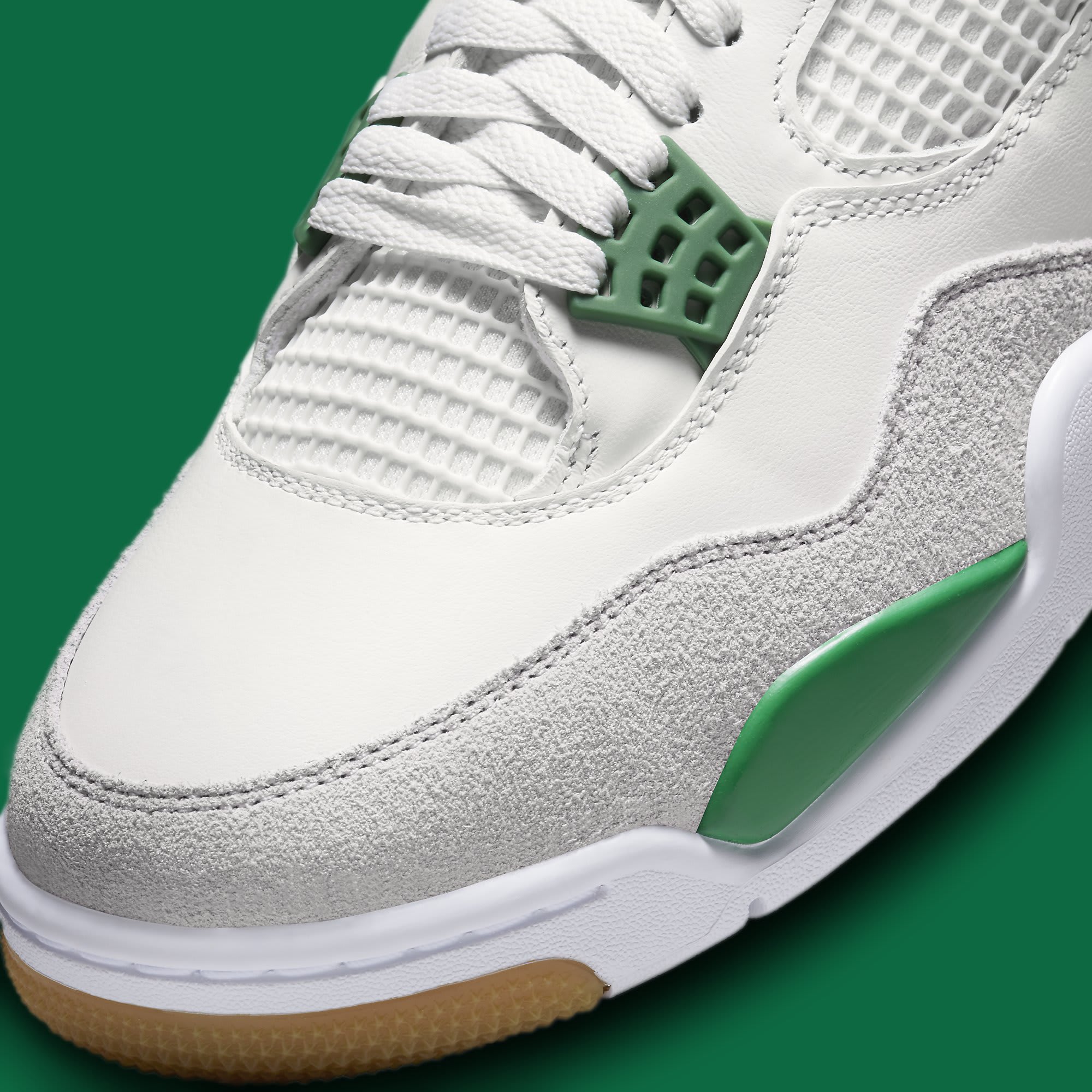 UPDATE (03/08): Official product images of the “Pine Green” Nike SB x Air Jordan 4 have loaded on the backend of Nike’s website. The sneaker will be released on March 17 at select skate shops and at select Jordan stockists on March 21 for a retail price of $225. Leaker @zSneakerheadz also broke down the differences between this Nike SB version and the standard Jordan 4, revealing that the upper on this new pair breaks in more easily for skating while the streamlined forefoot interior provided a better board feel. There’s also more padding on the ankle collar as compared to the standard pairs while a more flexible heel tab and the gum rubber on the outsole provide a better skating experience.
