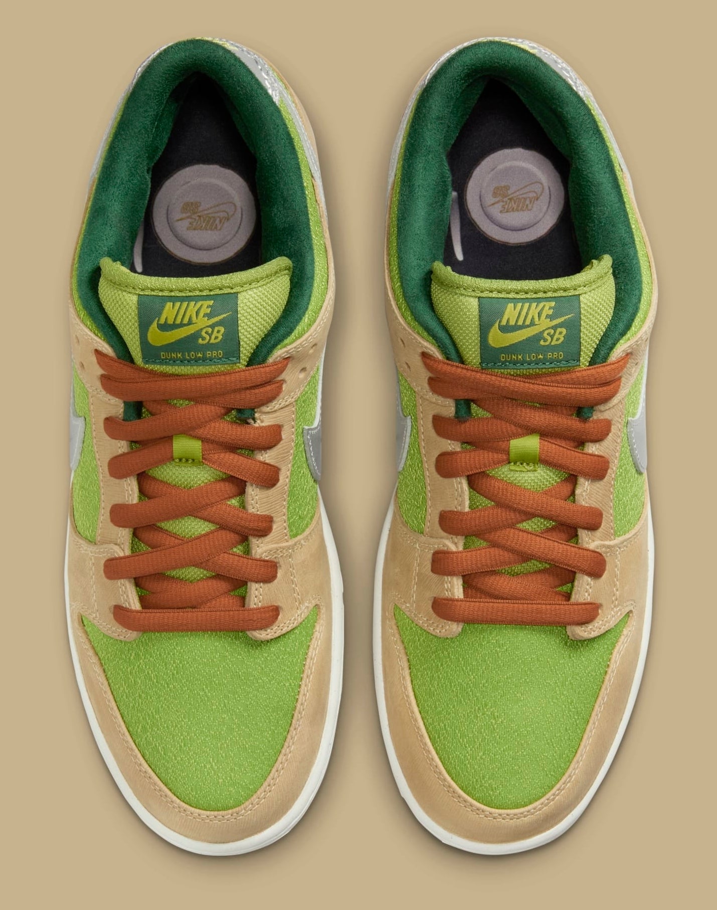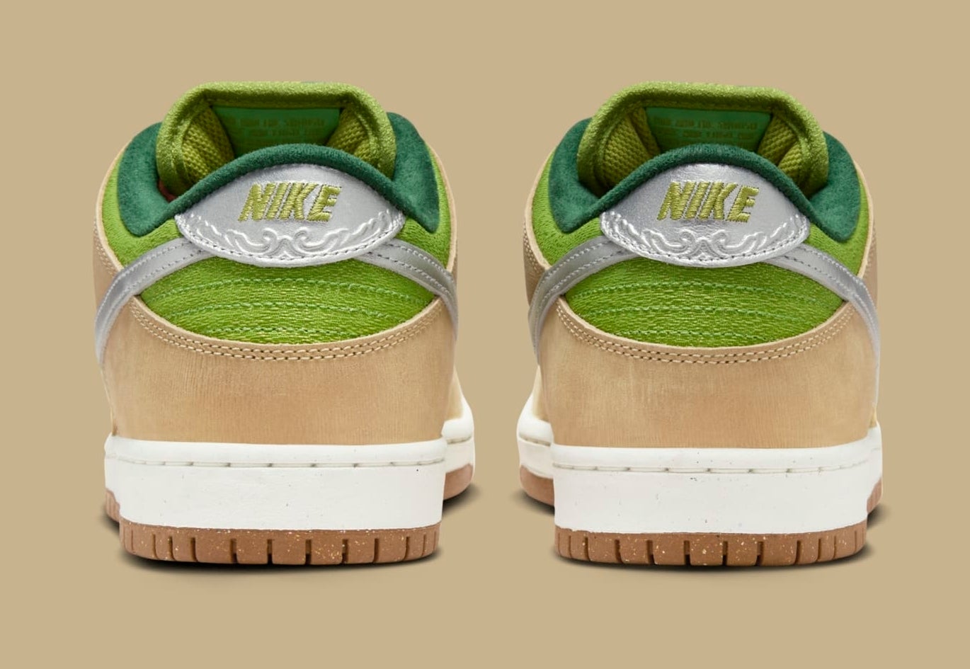 The latest pair is this "Escargot" Nike SB Dunk Low, which was shared by @Masterchefian on Instagram. As the name of the colorway suggests, this vibrant colorway references the staple French dish escargot. The sneaker features a two-tone green and brown color blocking on the upper as a nod to the butter sauce and the snail's shell, respectively. There's also a silver Swoosh on the sides and a graphic stamped on the insole, both inspired by the accompanying silverware.